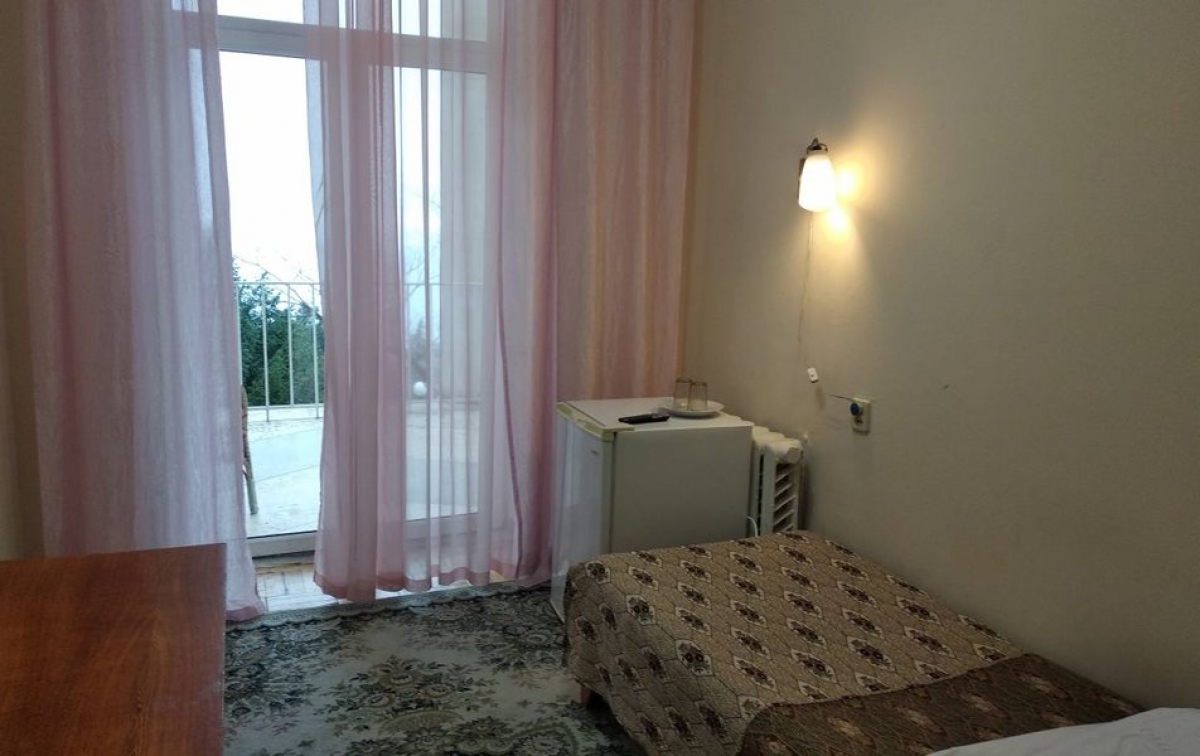 В номере: односпальная кровать, столик, тумба прикроватная, стул, шкаф, бра, холодильник, телевизор, раковина. Туалет и душ на этаже. Номер с небольшим балконом или без балкона, частичный вид на море. Дополнительное место евро-раскладушка.