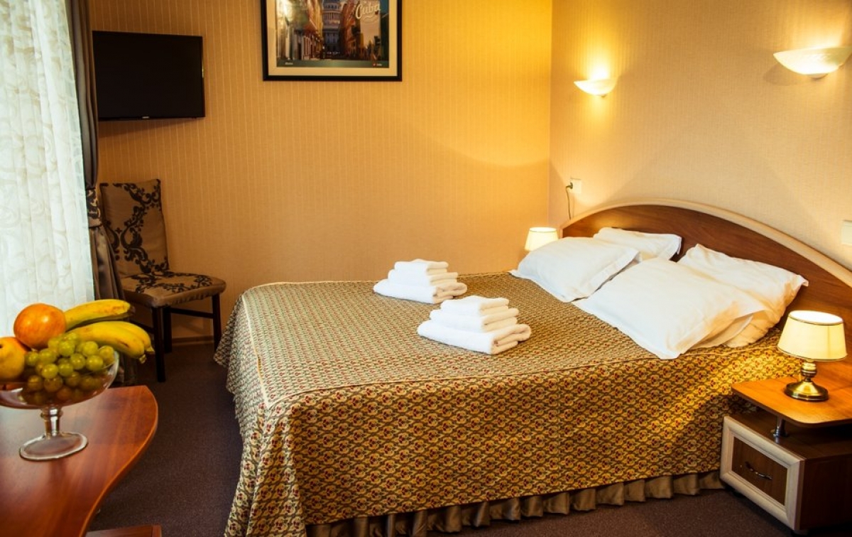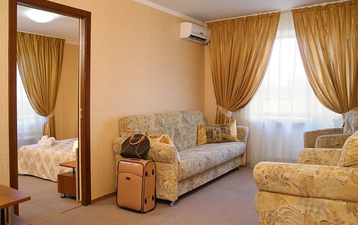 К услугам гостей номера различных категорий, от одноместных до номеров категории «Семейный», «Полулюкс» и «Люкс», укомплектованные современной мебелью, телевизорами, холодильниками и кондиционерами. Для размещения гостей предлагается три жилых корпуса: двенадцатиэтажный корпус с лифтом, четырехэтажный и трехэтажный без лифта. На территории отеля расположен ресторан, в котором организовано 3-разовое питание по системе «шведский стол», возможно диетическое питание по назначению врача, есть детское меню.