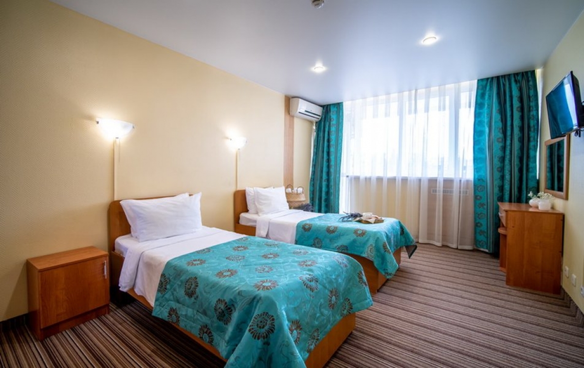 Однокомнатный двухместный улучшенный номер, площадью 19-20 м.кв. В номере две раздельные или одна двуспальная кровать, прикроватные тумбочки, шкаф для одежды, телевизор, холодильник, кондиционер, чайный набор, сейф, телефон. Ванная комната (душ/ванна, умывальник, туалет, фен, набор полотенец, косметические средства). Номер без балкона. Максимальное размещение - 3 человека.